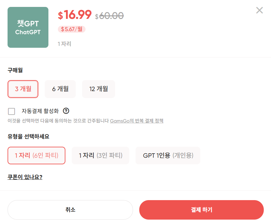 지피티는 너무 비싸서 겜스고를 통해 자주 이용하는 편이에요.
