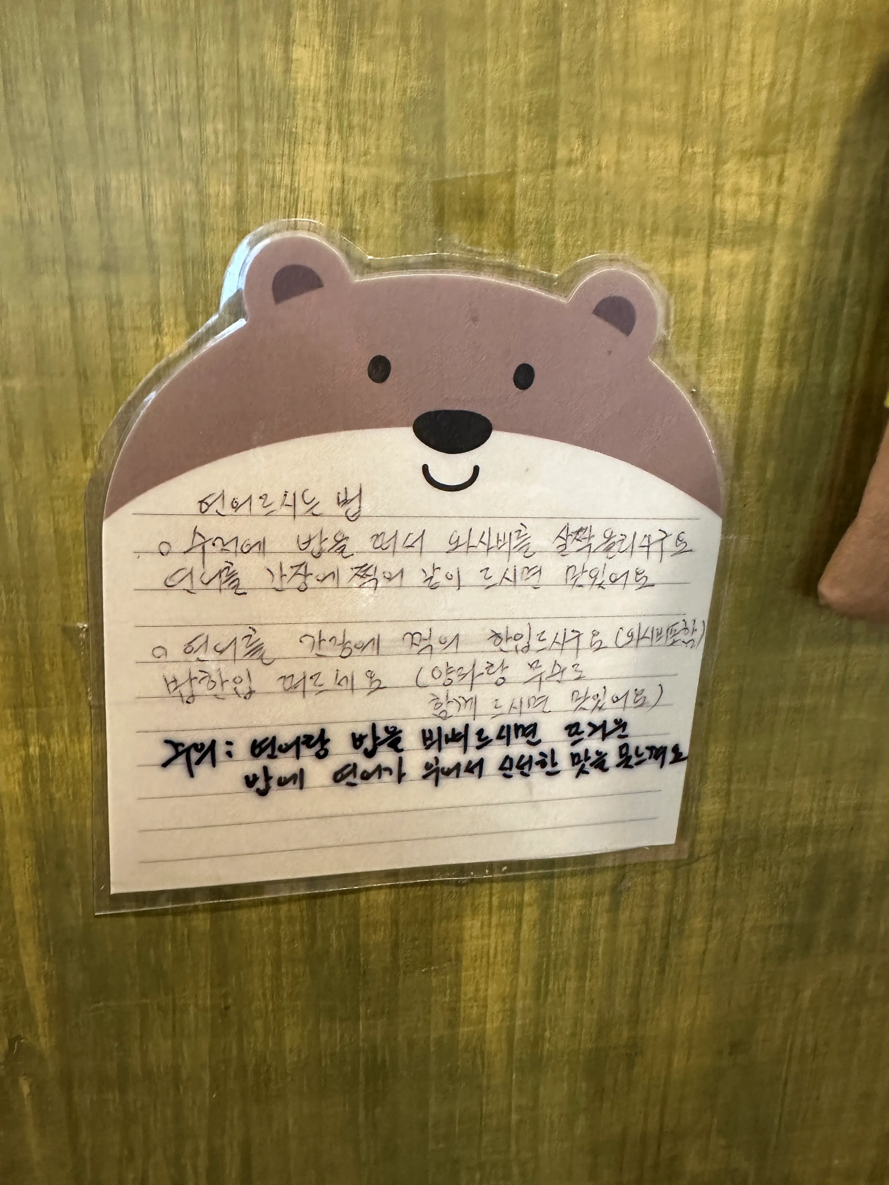 베스킨라빈스 바로 옆 문을 통해서 안으로 들어가시면 왼쪽편에 나무문이 보이실거에요!