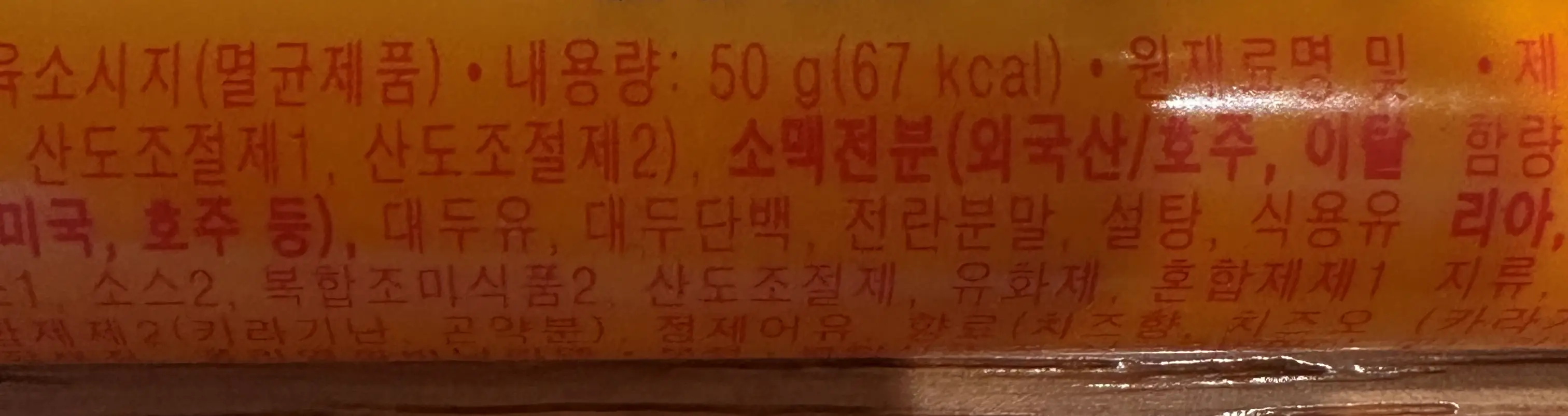다이소 소세지 천하장사 한개 영양성분과 칼로리