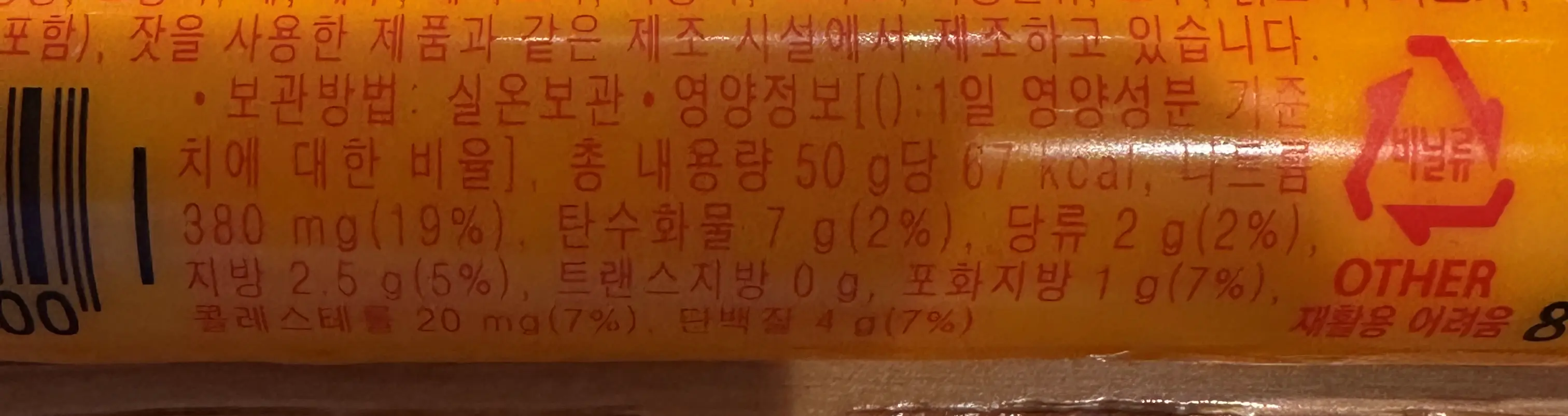 - 트랜스지방 : 0 g (0인데 왜 표기 한거지?)