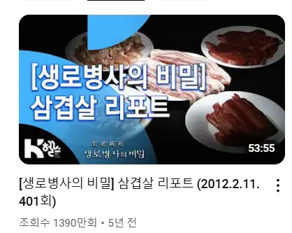 얼마 전에 유튜브로 생로병사의 비밀 <삼겹살 리포트>를 보게 되었는데요.