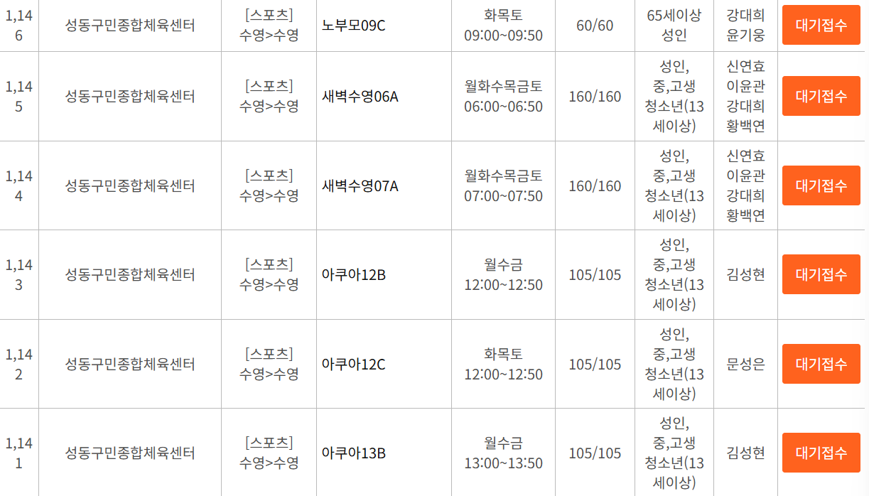 성동구 수영강좌 선착순 접수바로 하기