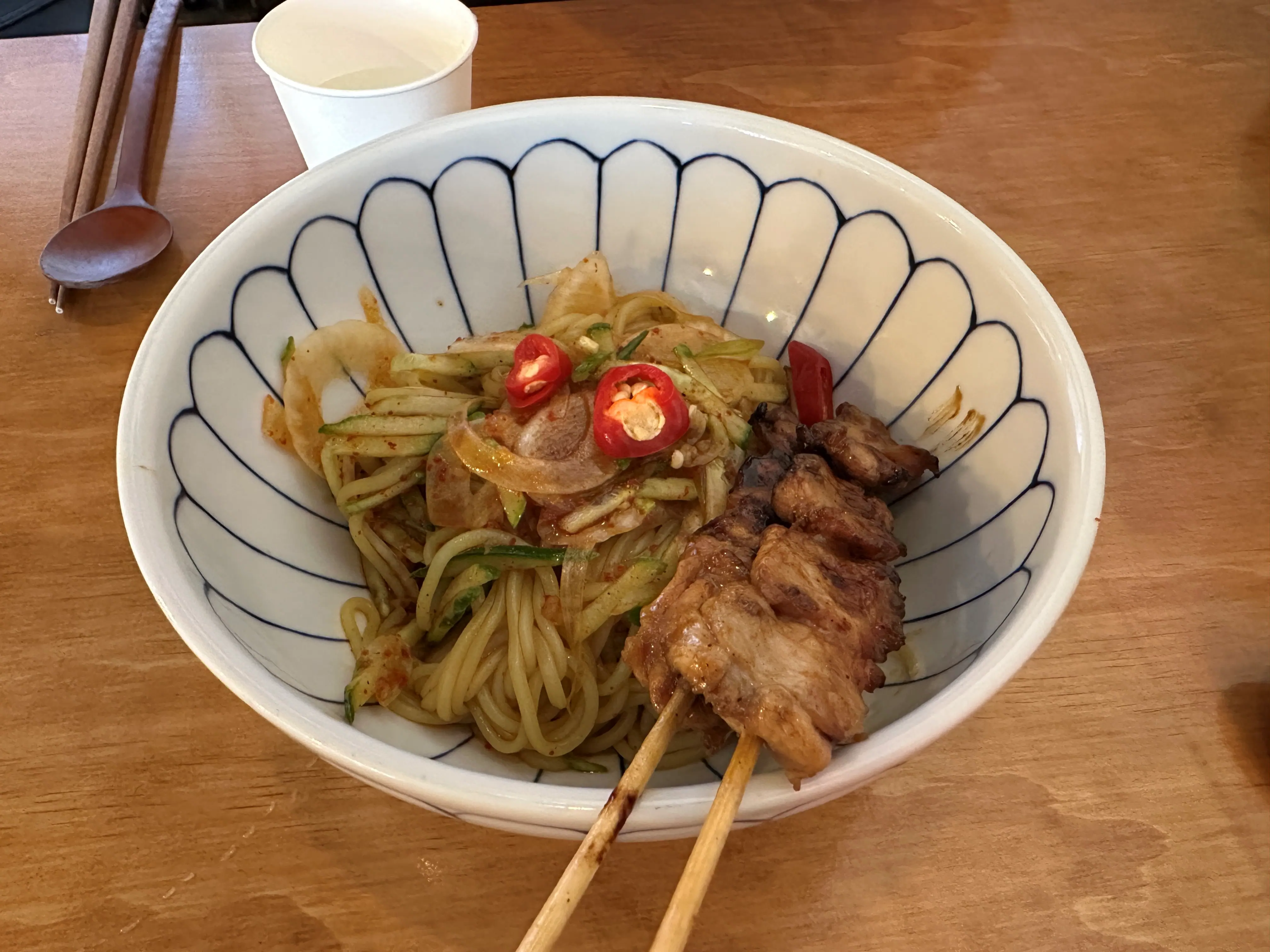 점심에는 메뉴에 꼬치가 두개씩 나온다고 해요.
