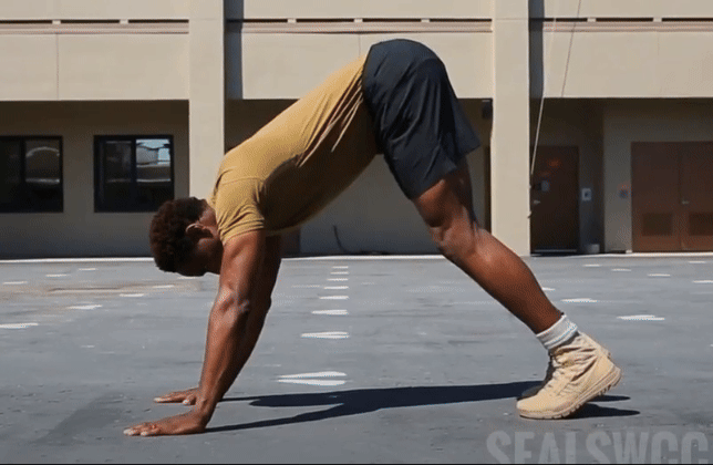 파이크 푸쉬업과 유사한 자세에서 바닥을 쓸면서 내려갔다가, 다시 돌아오는 푸쉬업입니다.