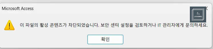 이 파일의 활성 콘텐츠가 차단되었습니다. 보안 센터 설정을 검토하거나 IT관리자에게 문의하세요.