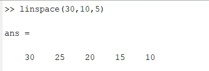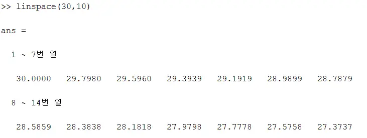 그럼 linspace(30,10,5)가 되겠죠?