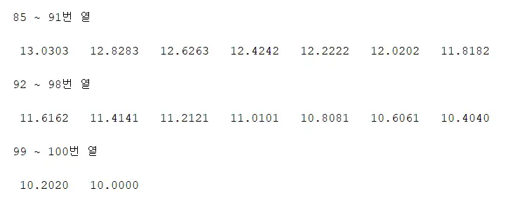 무려 100개의 열이 만들어 졌습니다!!