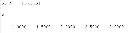 자 그럼 A에는 1에서부터 0.5씩 늘어나는 배열이 저장됩니다.